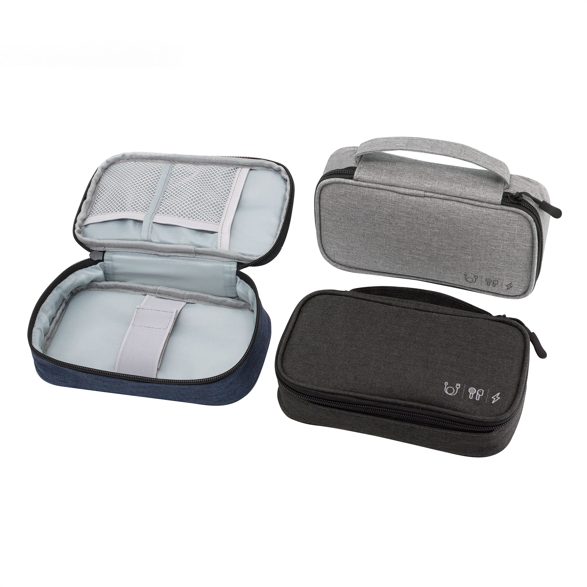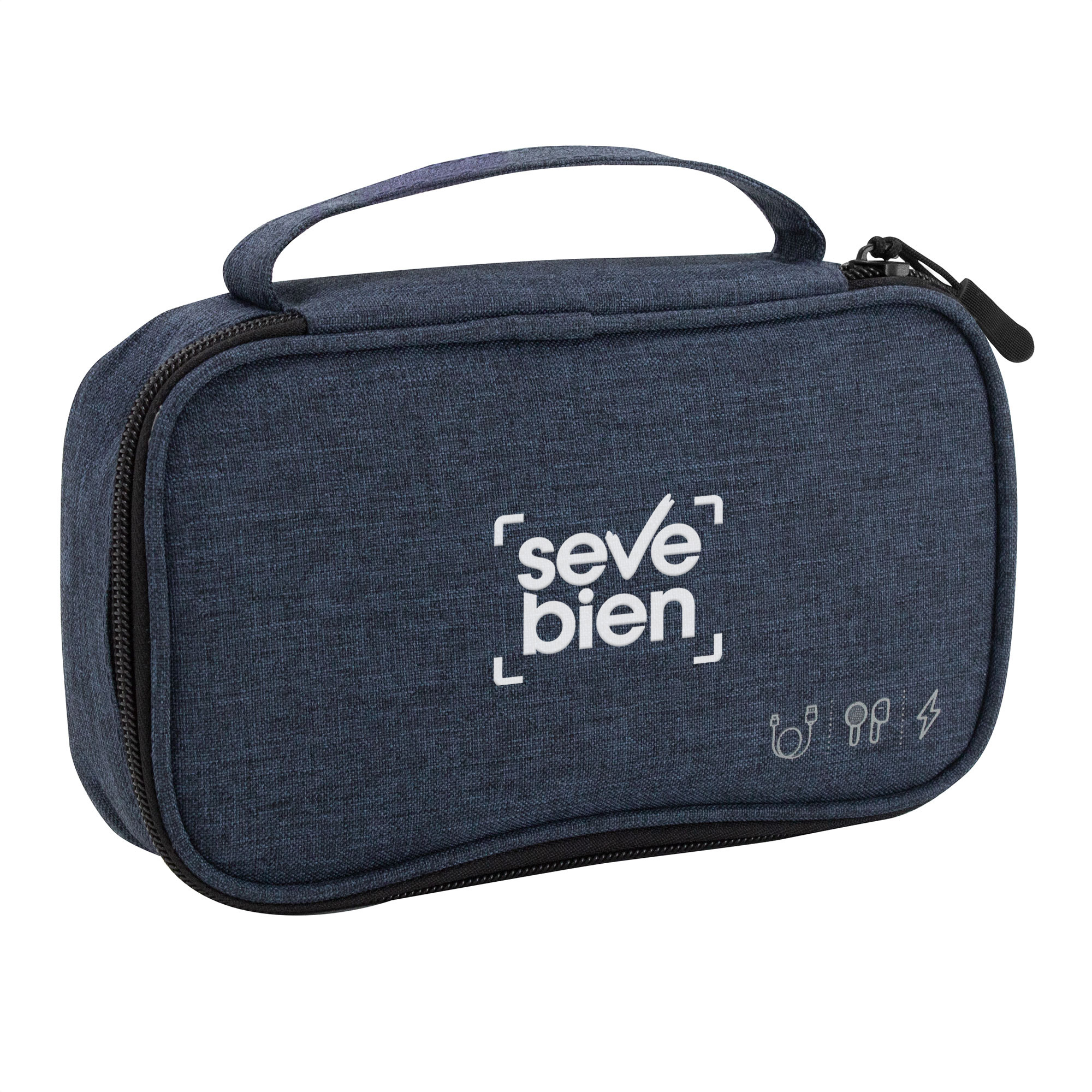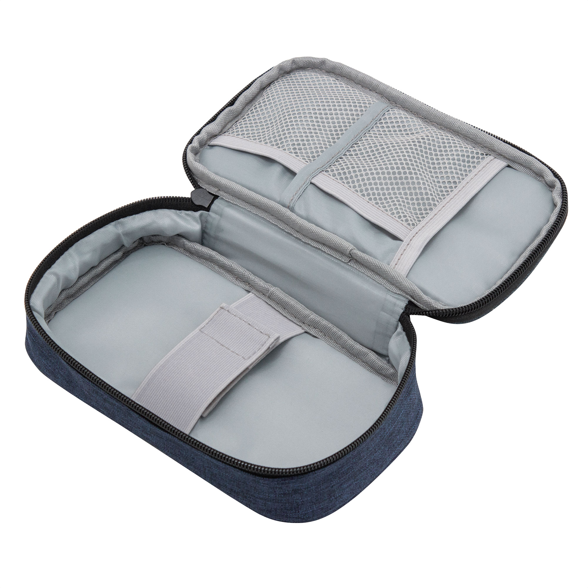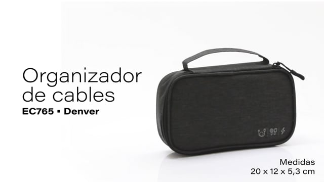 Organizador de cables. Estructura acolchada. Asa para transportar. Compartimento principal con cierre con tirador engomado. Interior forrado. En uno de sus lados cuenta con un bolsillo principal y dos pequeños de red, y en el lado contrario tiene un elástico con velcro multipropósito.
